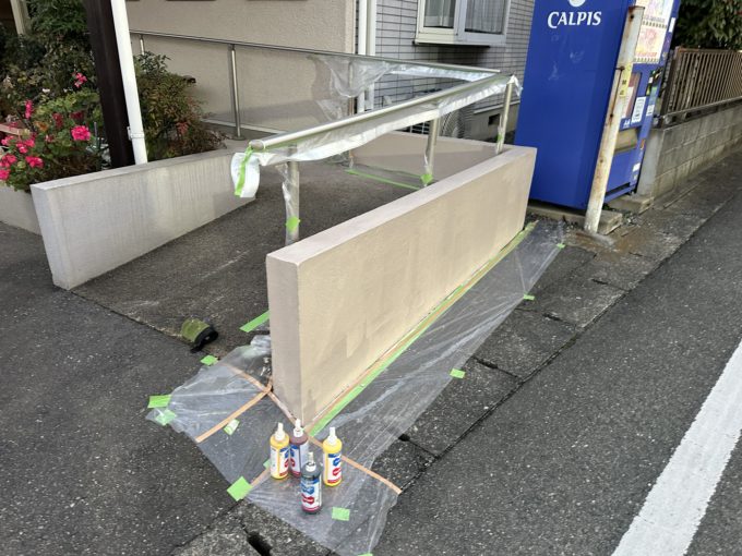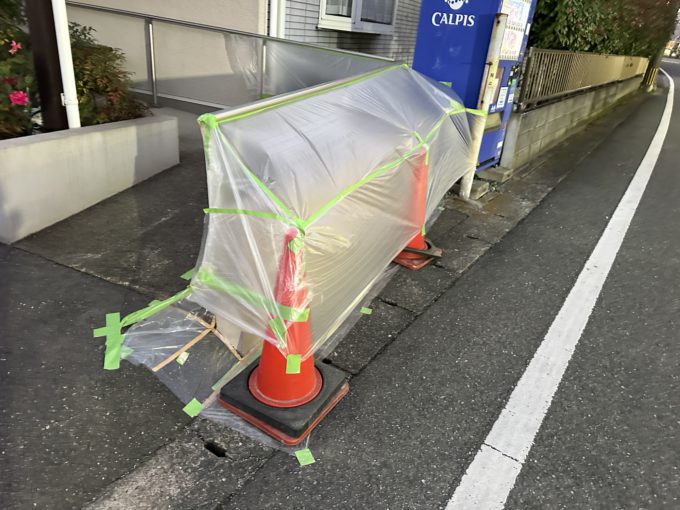 塗った後に夜露で流れない様に養生